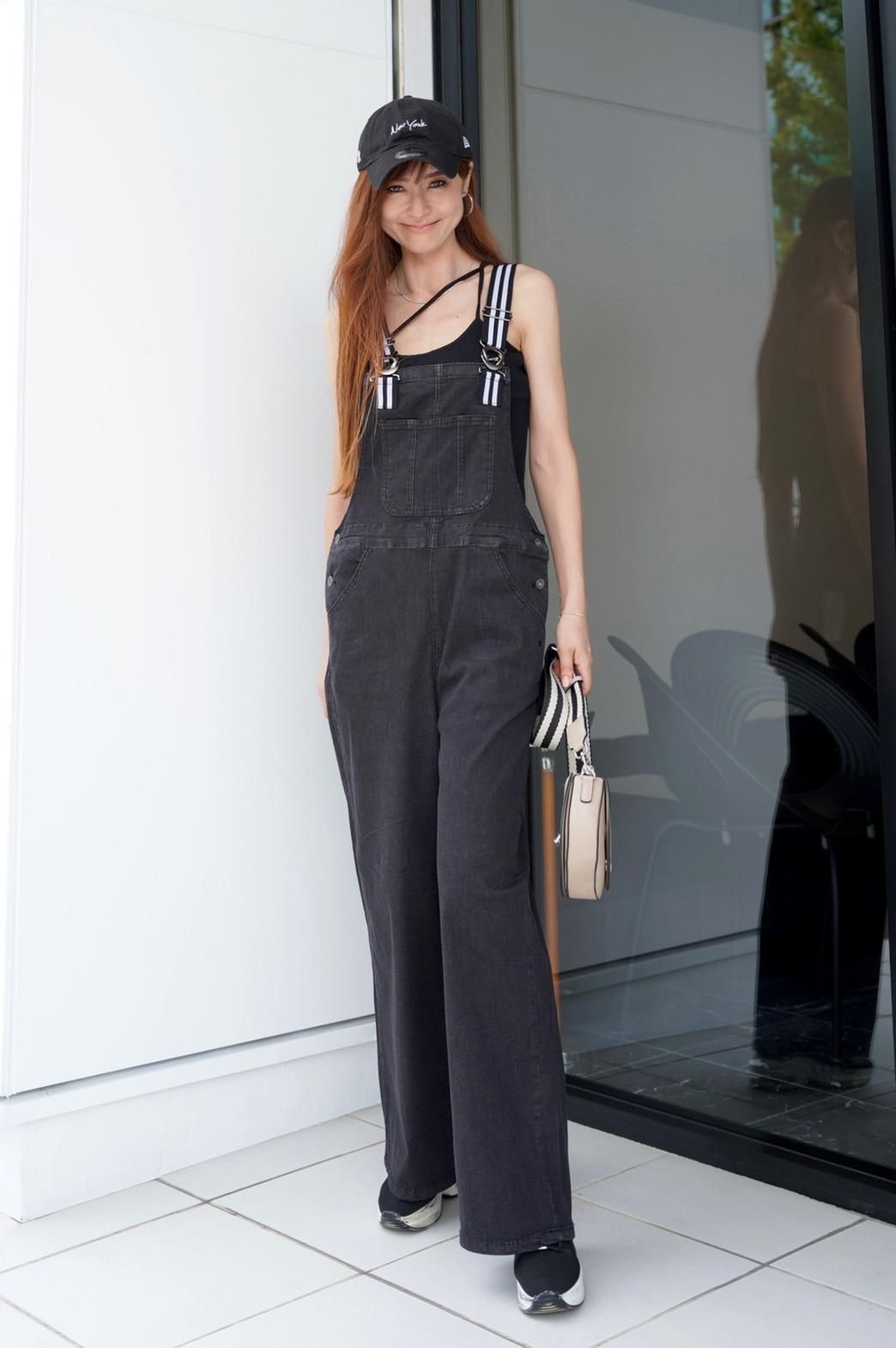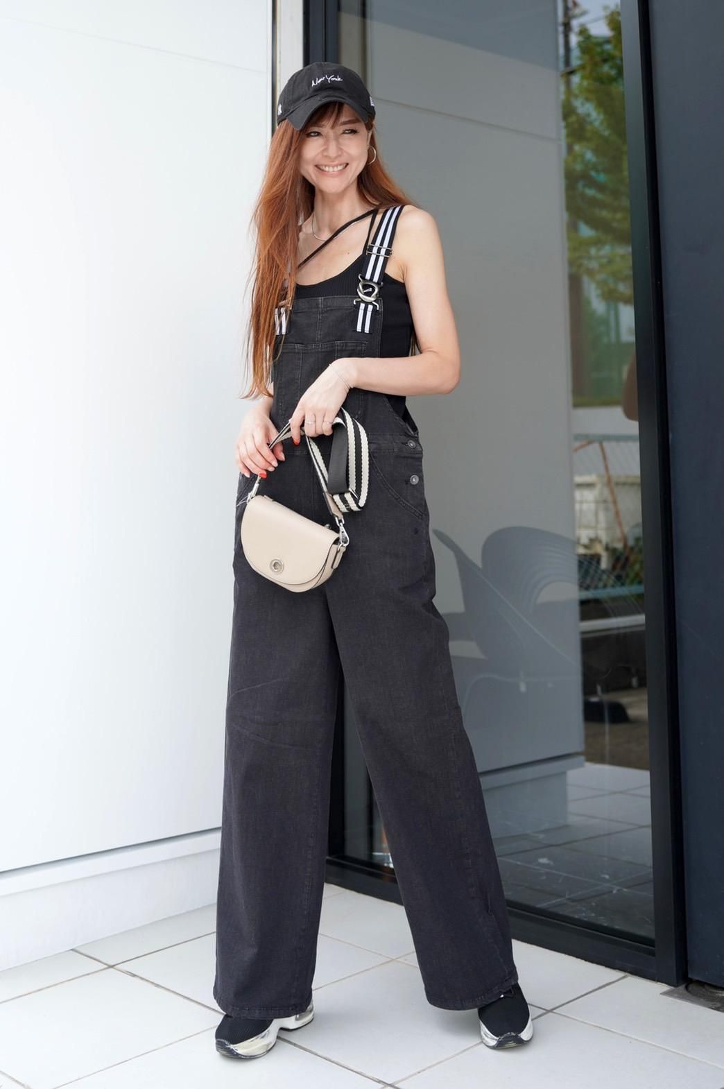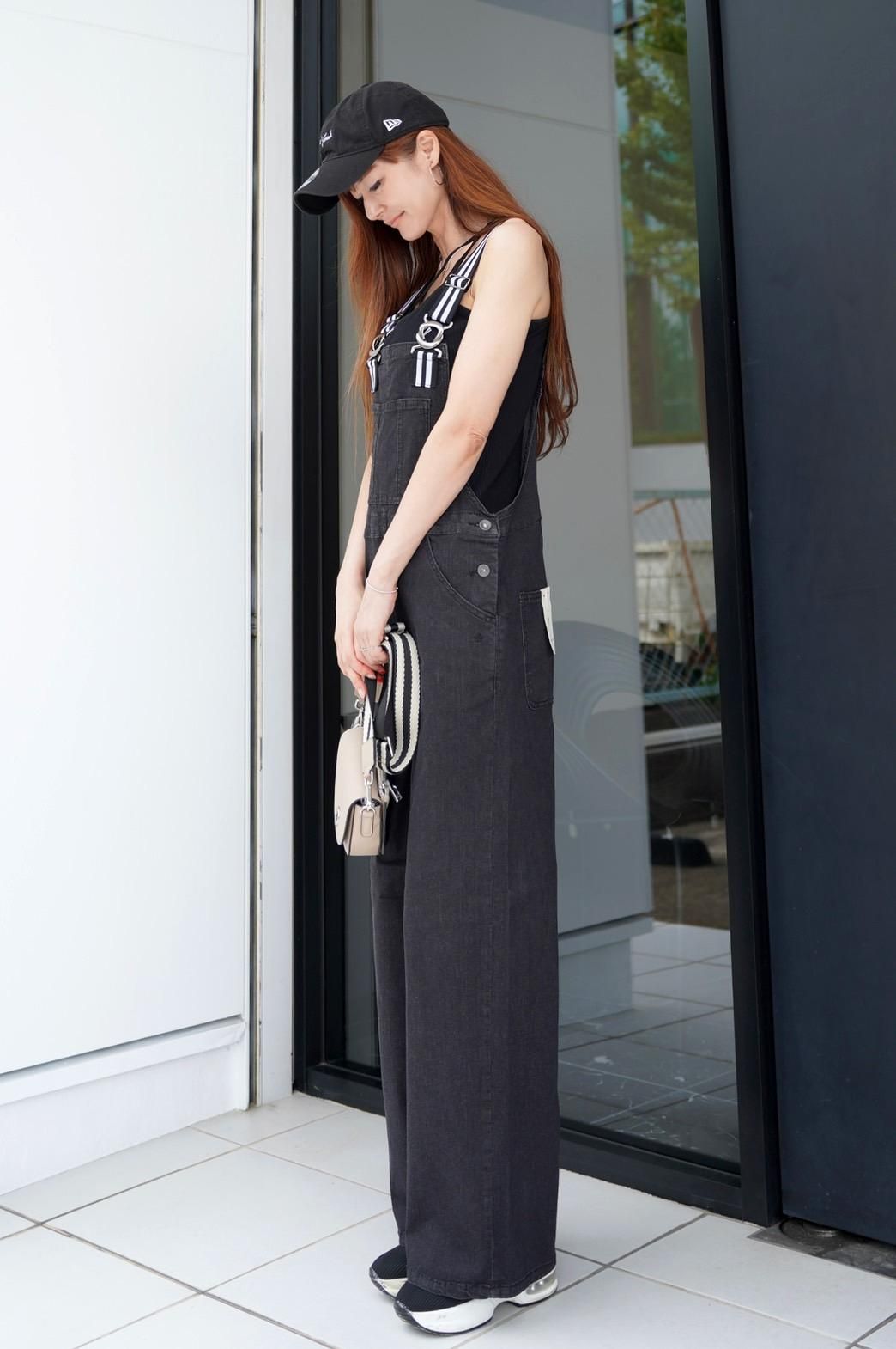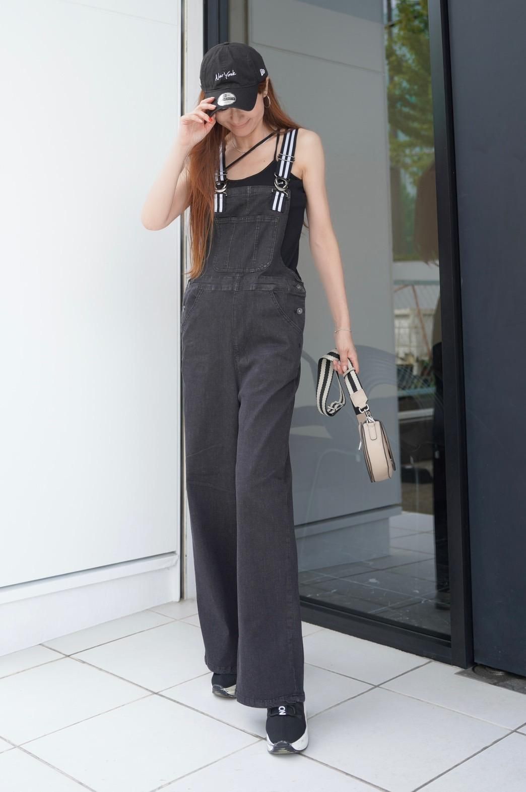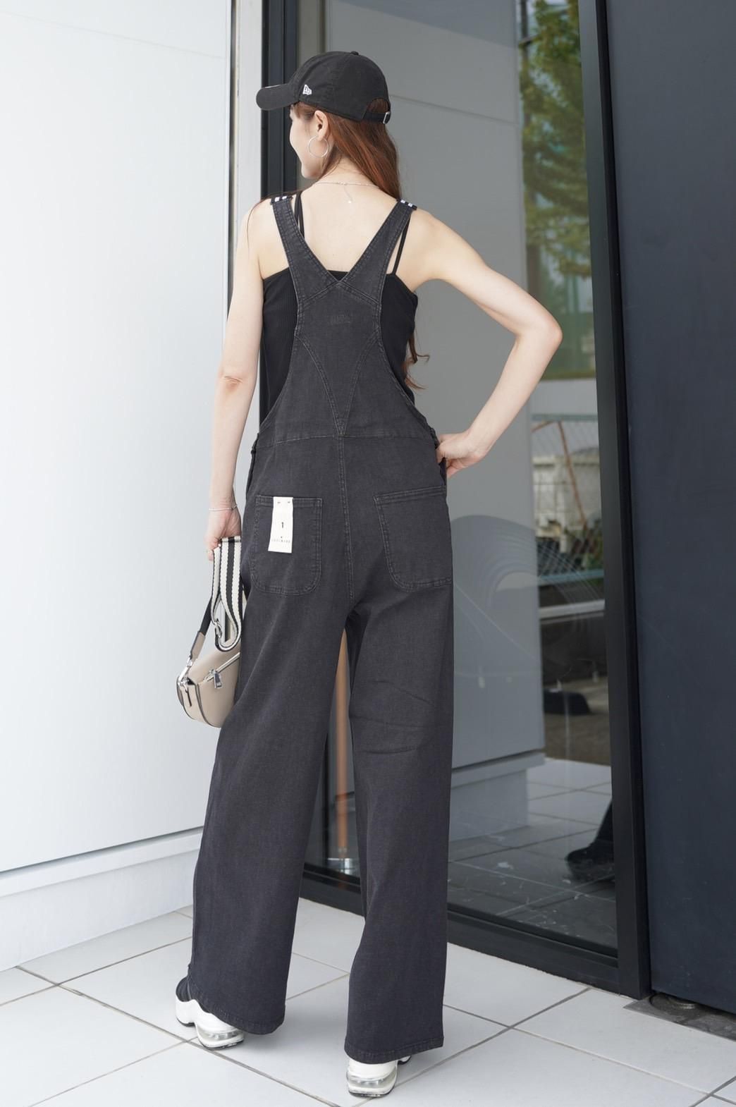 薄地のストレッチの効いたブラックデニムのオーバーオールです。