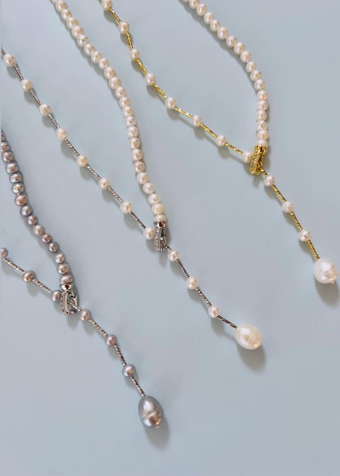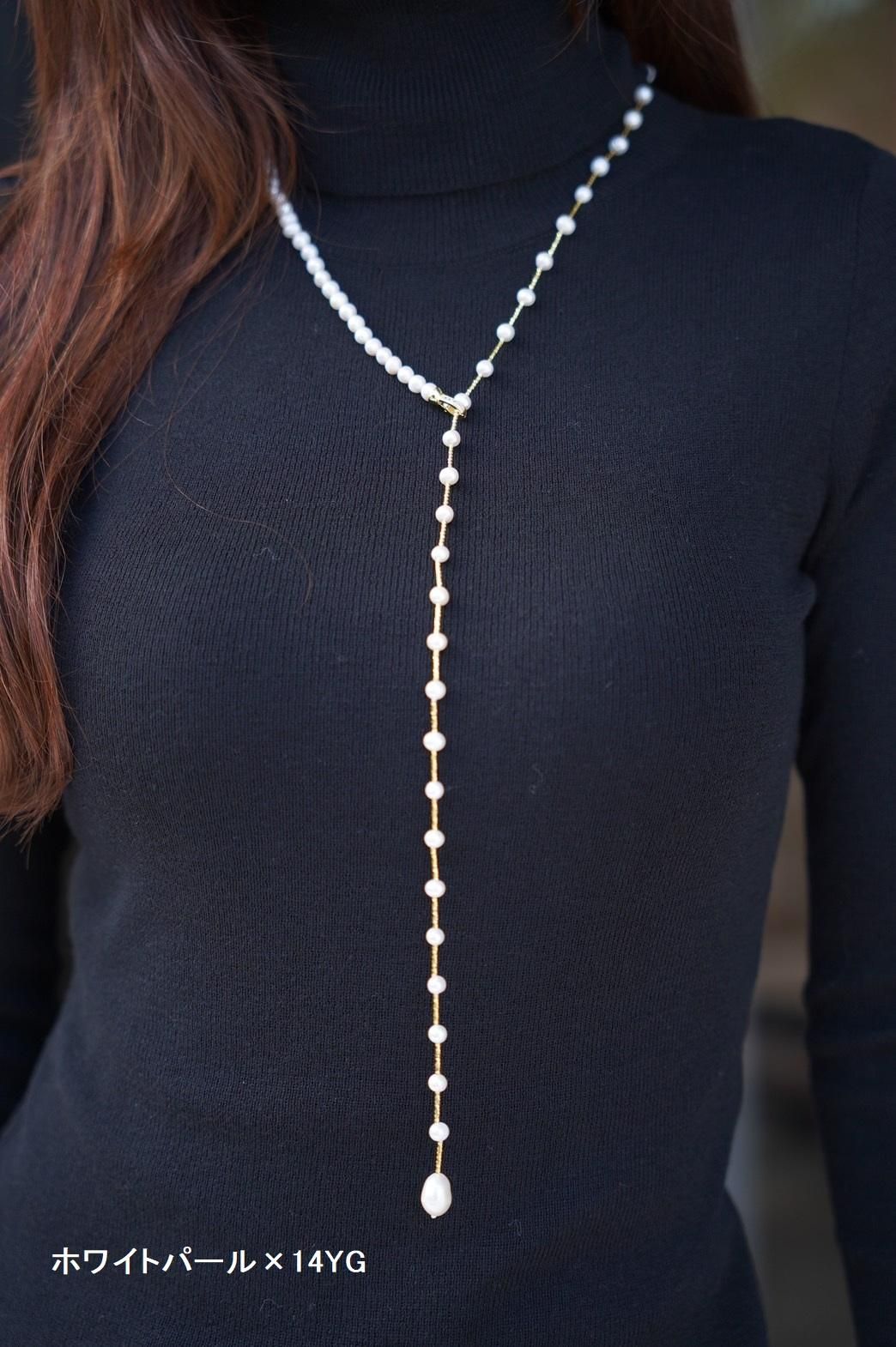 ベビーパールハーフ&ハーフYラインネックレス【ロング】