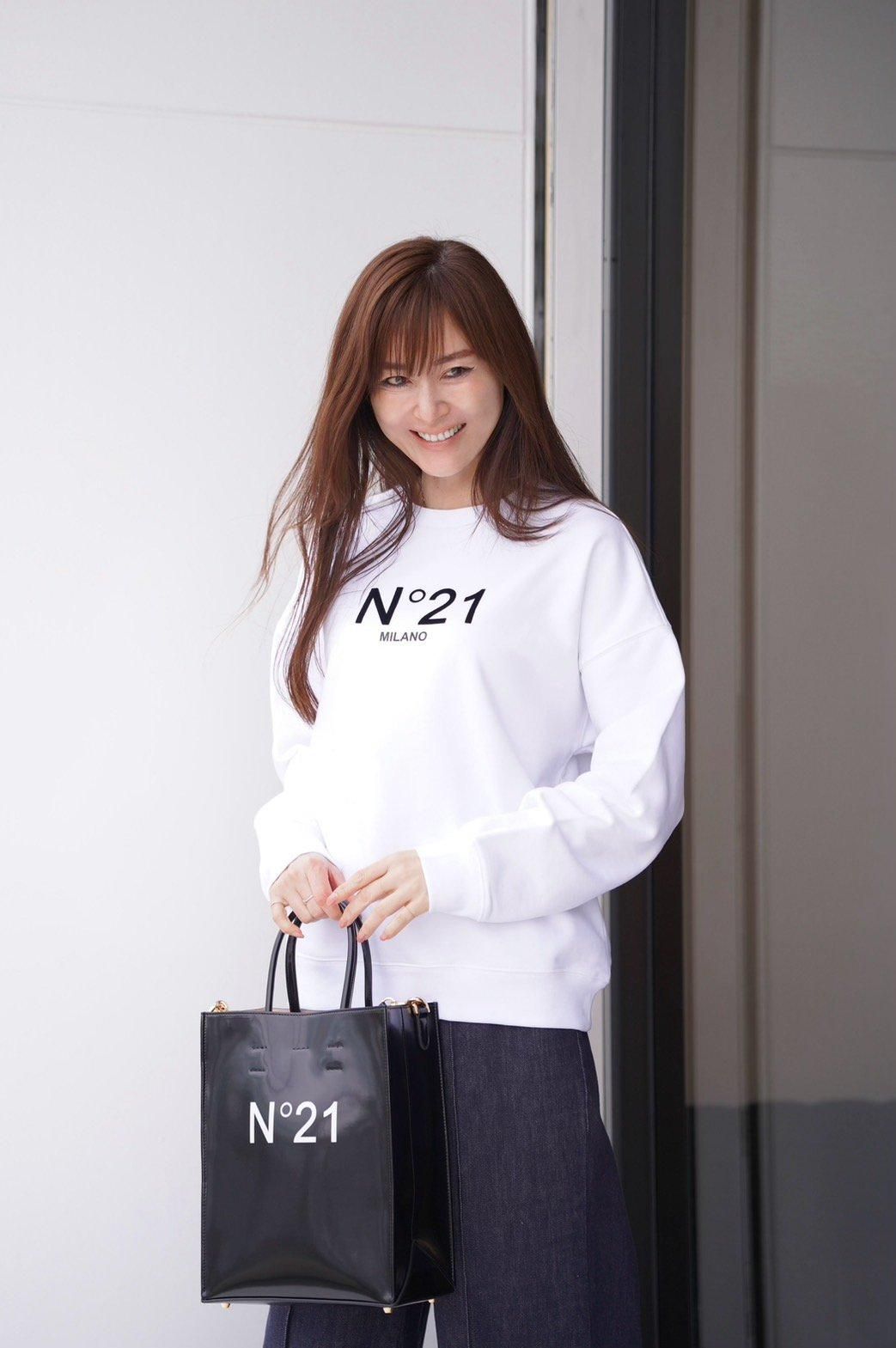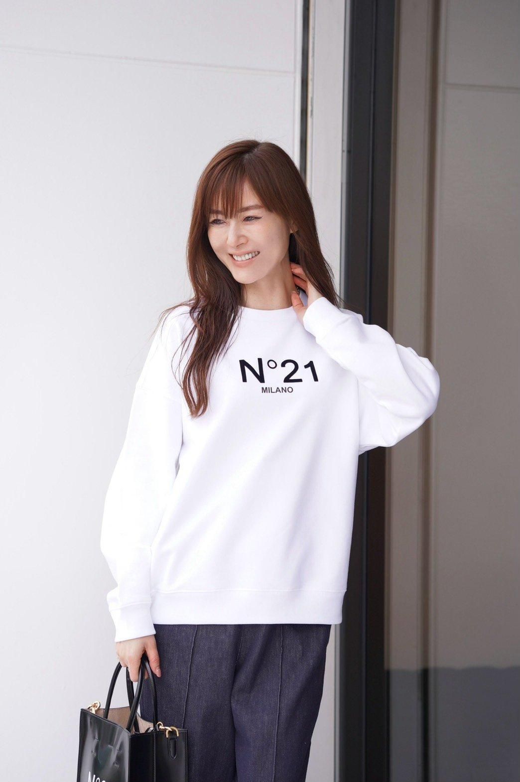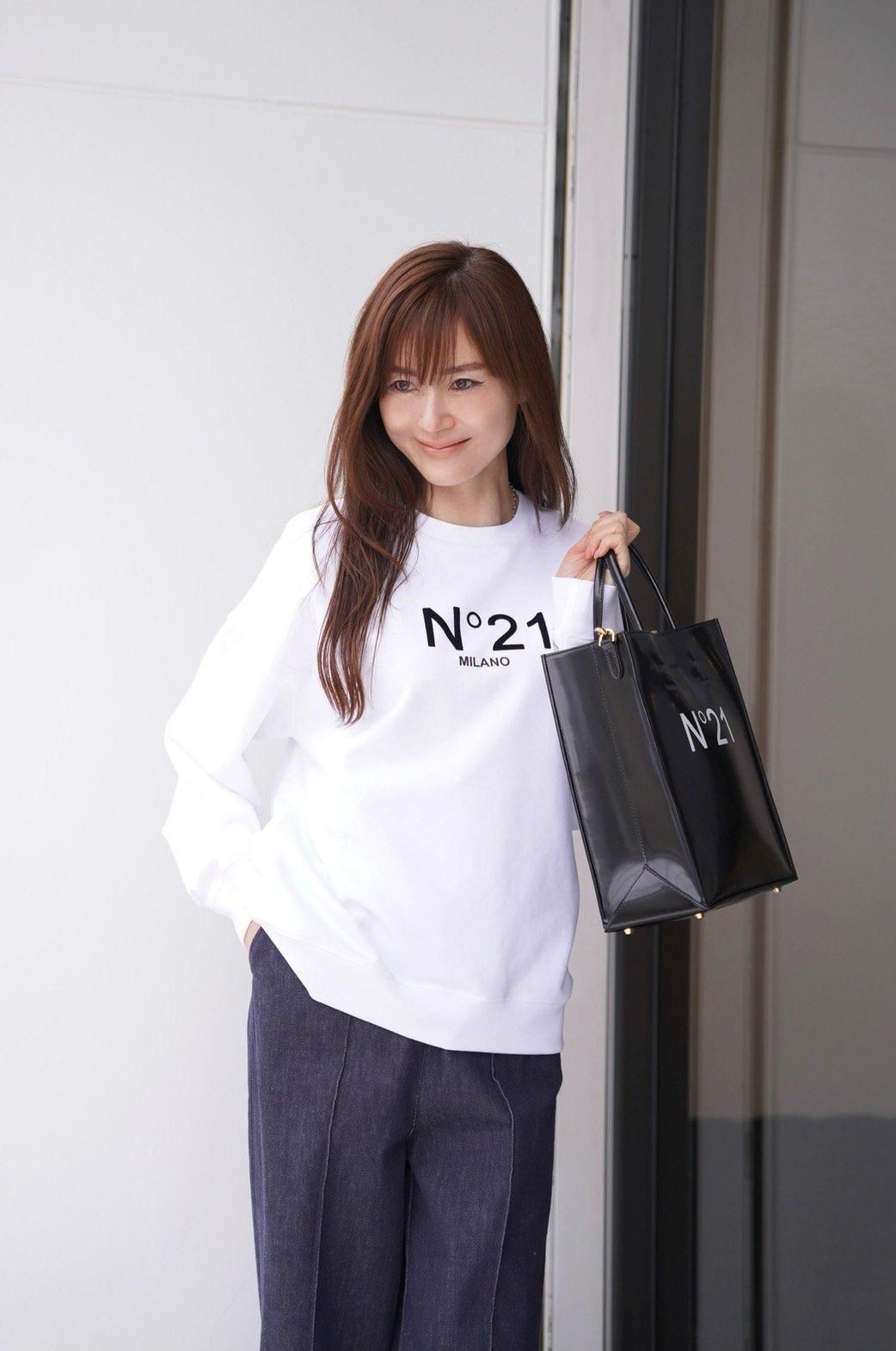 コットン100%のフロント中央にN°21フロッキーロゴがポイントのシンプルな起毛トレーナーです。