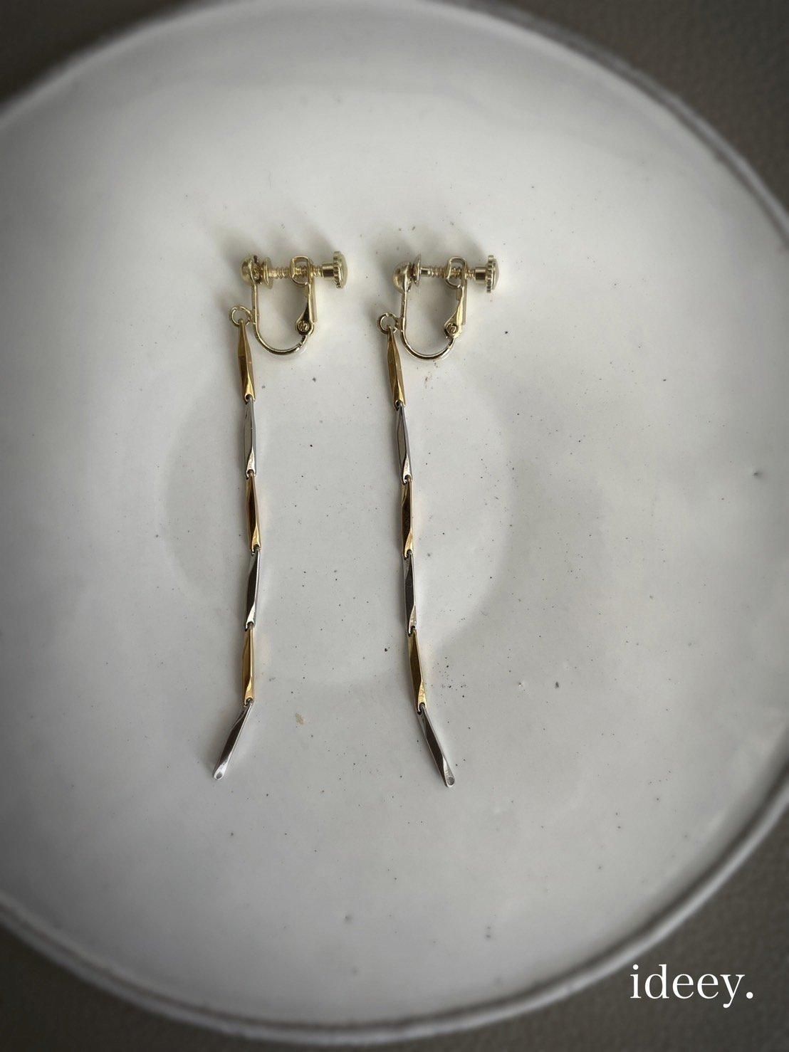 ピアス(イヤリング)は、シルバーとゴールドのバイカラーが個性的。