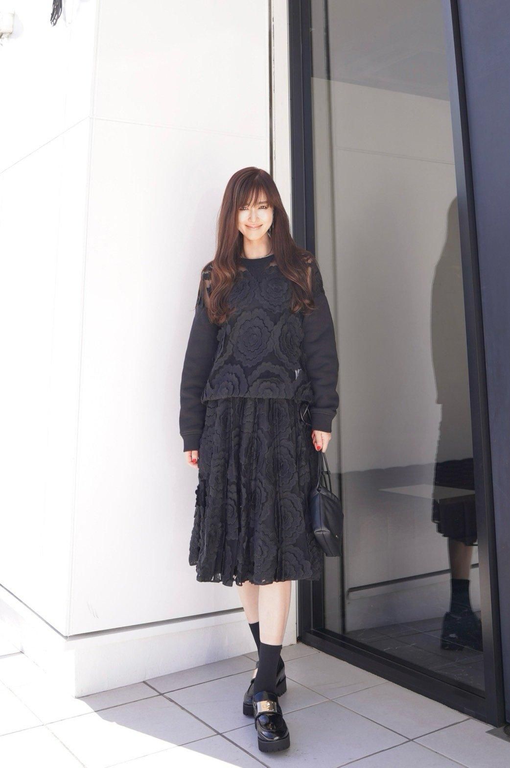 ひざ丈の丈感は大人っぽさを演出しつつ、足が見える絶妙なバランスが女性らしい印象を与えます。