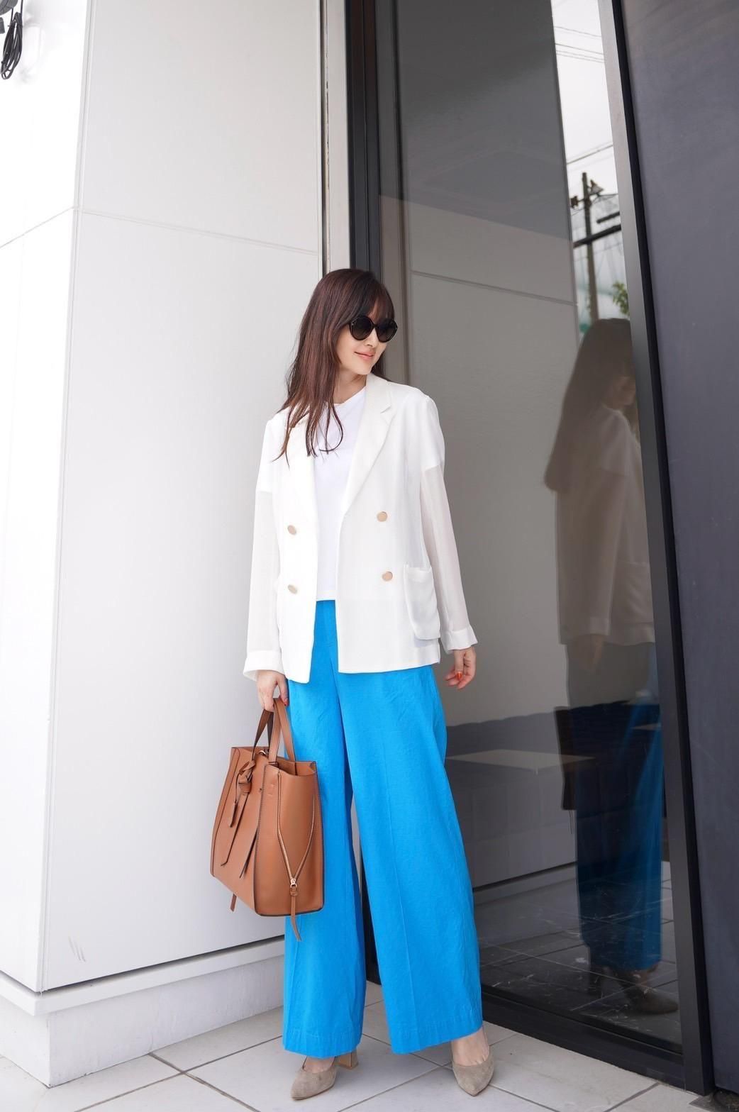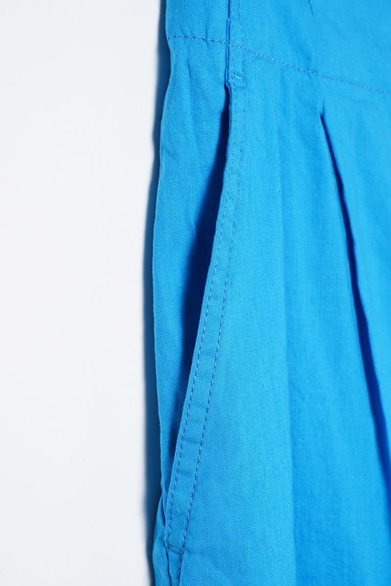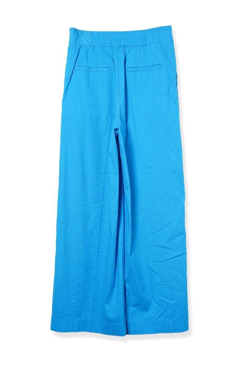 鮮やかなブルーが目を引く春夏に最適なリネン混素材を使用した、さらりとした肌触りと清涼感のある少し太めのあストレートシルエットのパンツです。