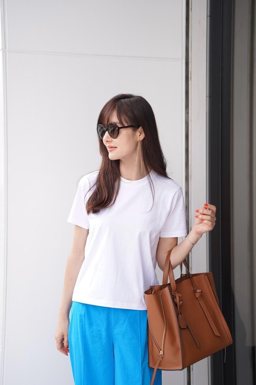 脚のラインを拾わないゆとりと持ちつつも、すらっと伸びるラインが美シルエット、ハイウエストデザインで足長効果をもたらします。