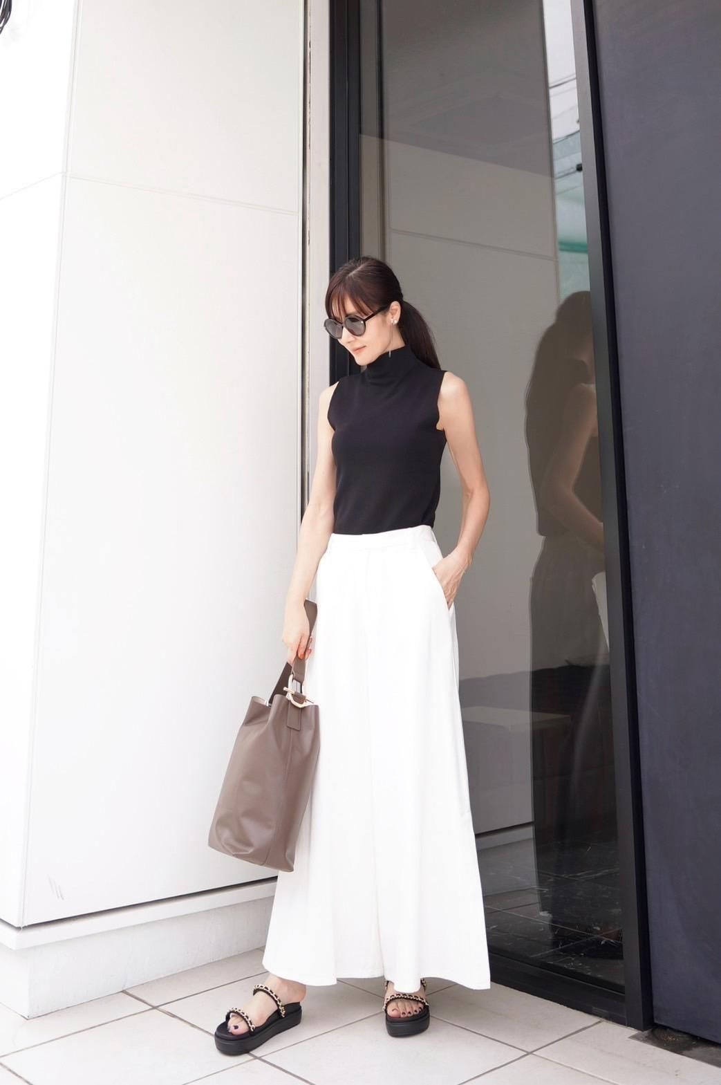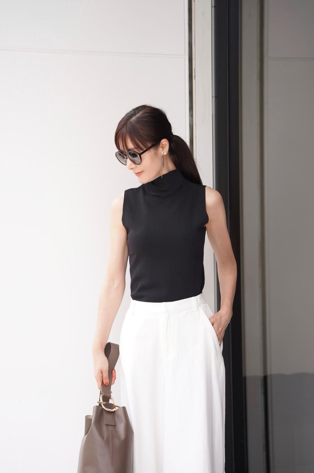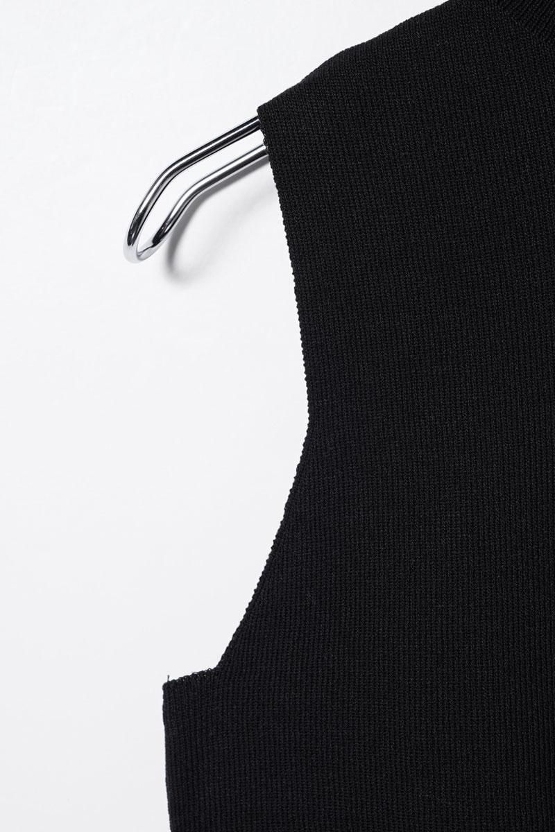 立体感のあるリブ編みノースリーブのハイネックニット。