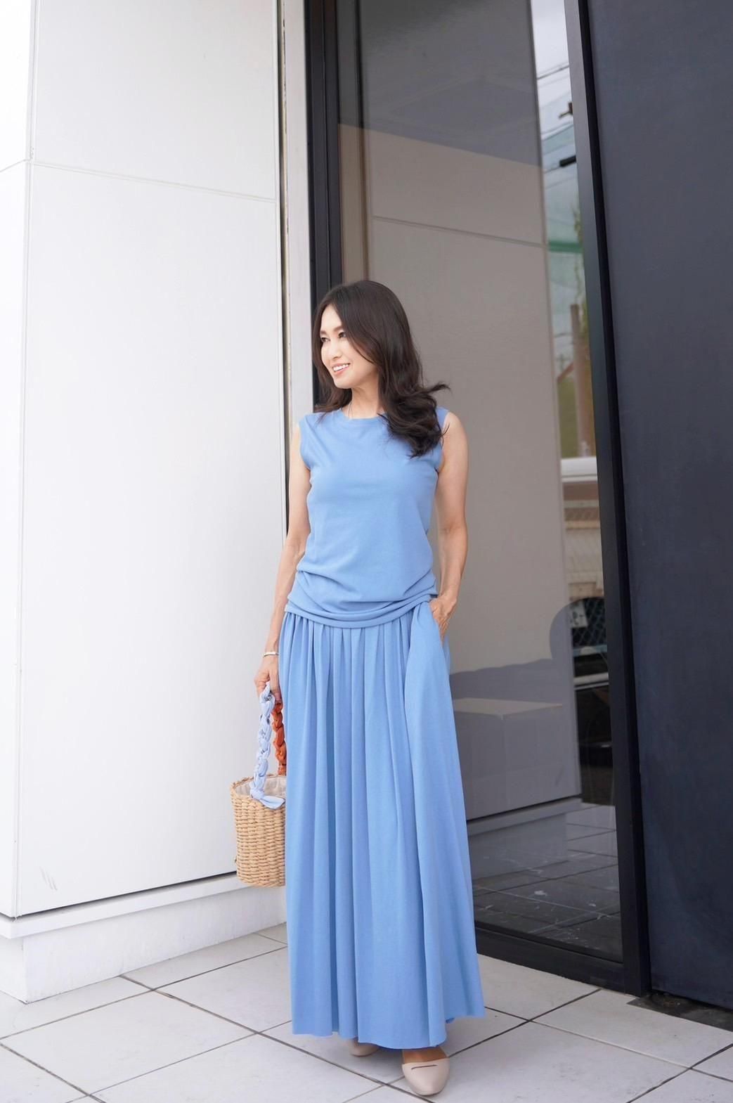 同素材の『アシンメトリーロングタンクトップ』とのセット着用もおすすめです。