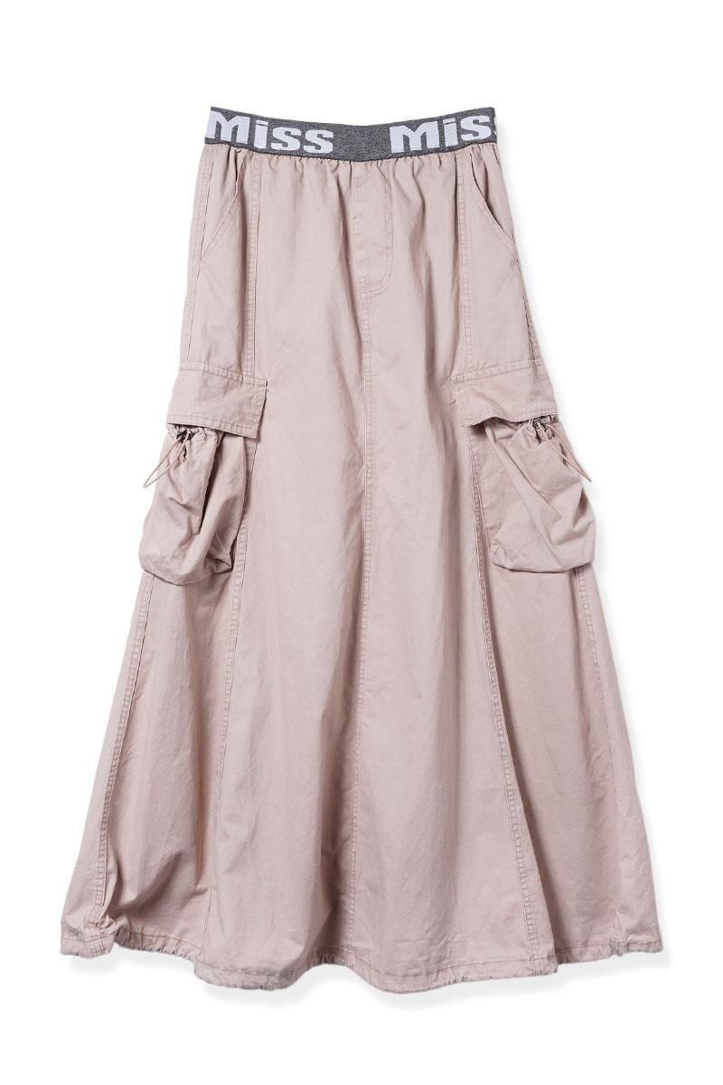 ウエストのロゴ入りゴムがアクセントになった、フレアシルエットのカーゴスカート。