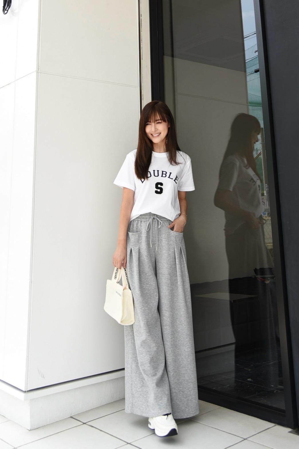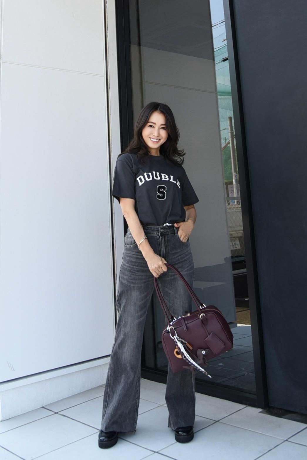 デニムはもちろん、スウェット、ショートパンツ、綺麗めパンツやスカートと、どんなボトムにも合わせやすいシンプルTシャツです。