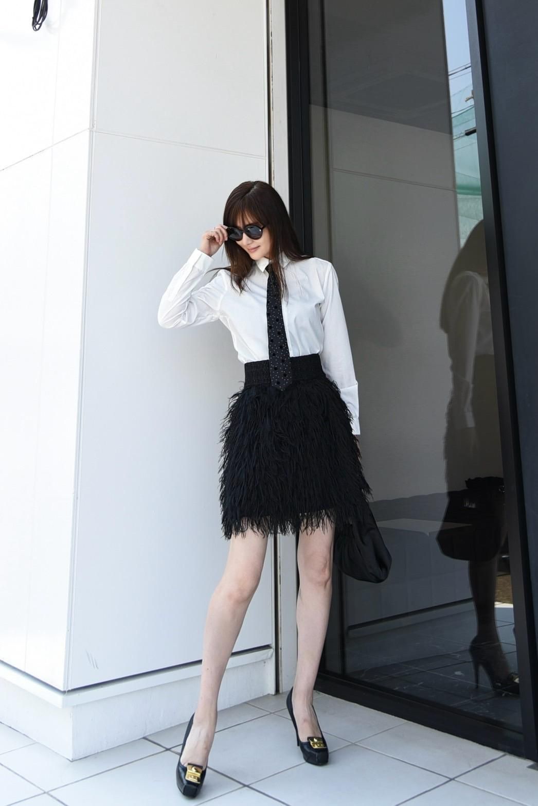 フェザーのような長めの毛足が特徴のジャガード生地を使用したミニスカート。