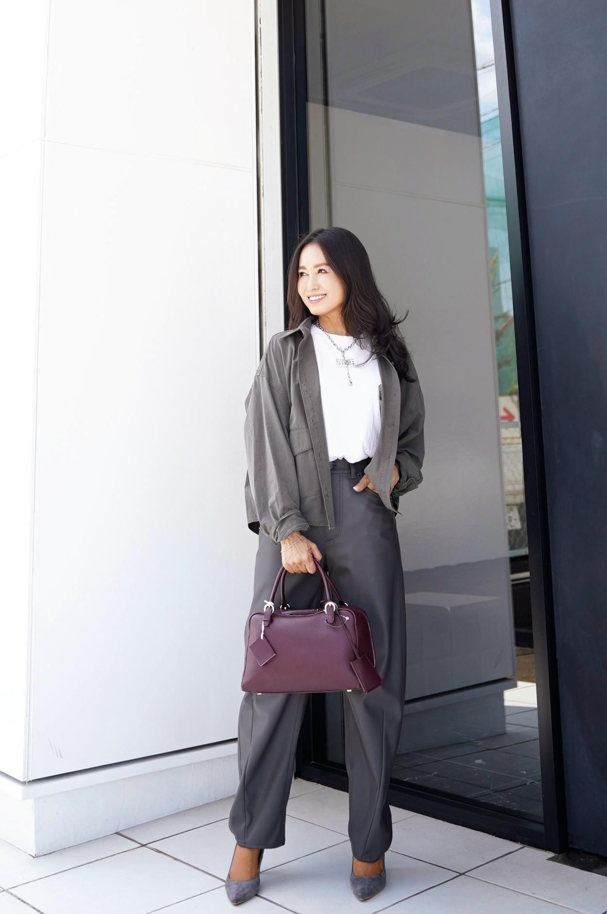 マットな質感で大人のスタイルにも合わせやすく、シンプルなトップスと合わせるだけで洗練された印象になります。