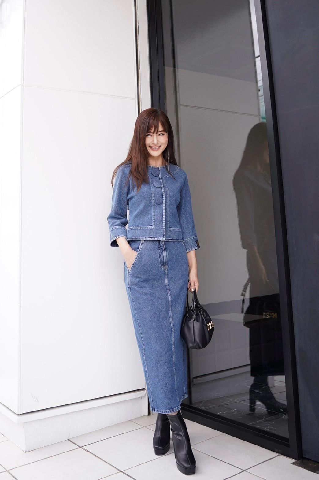 美しいラインのロングタイトスカートでハードなデニムスタイルを究極に女性らしく見せてくれる一品です。