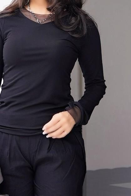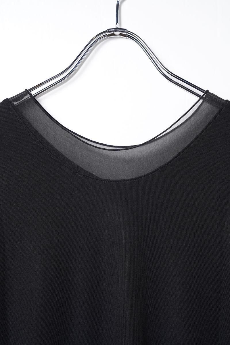 柔らかく心地よいリヨセル素材と、透け感のあるシアー素材を組み合わせたカットソートップス。