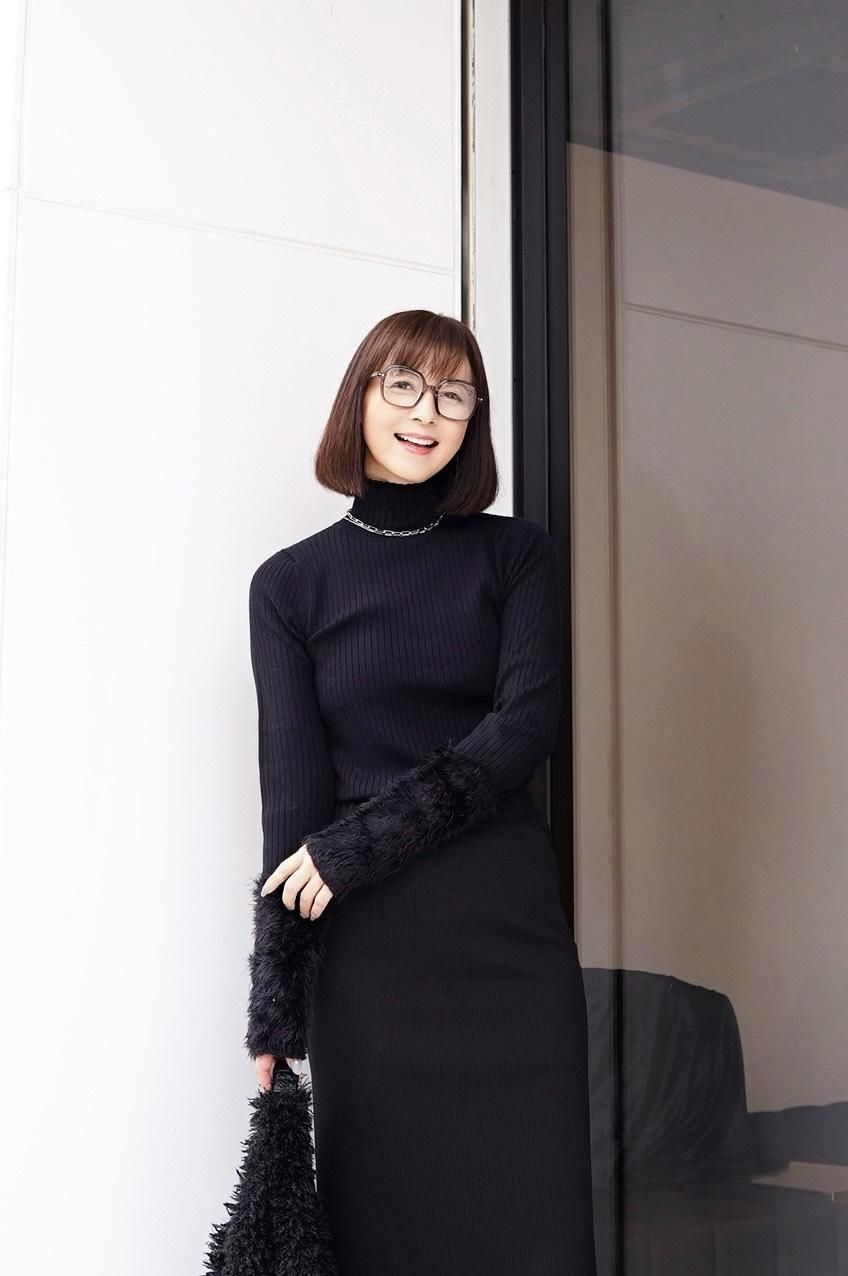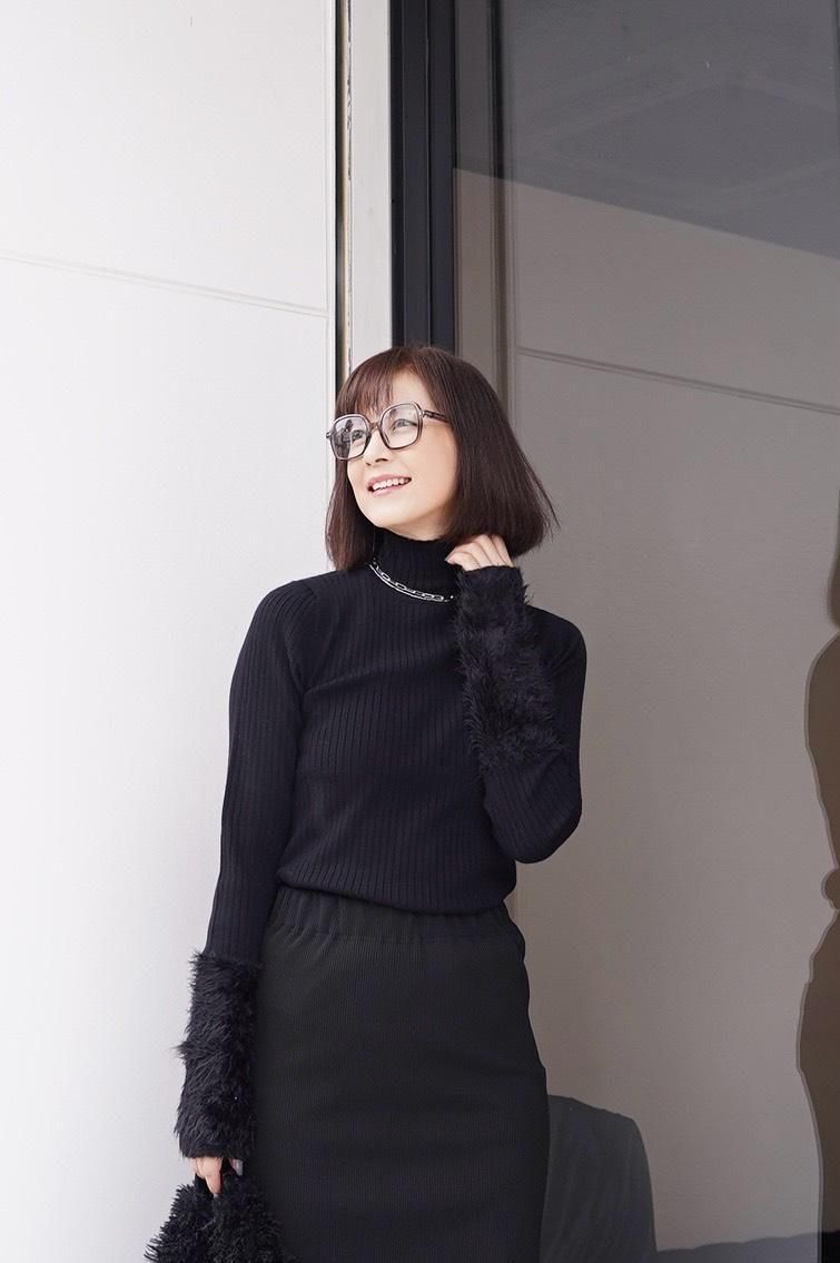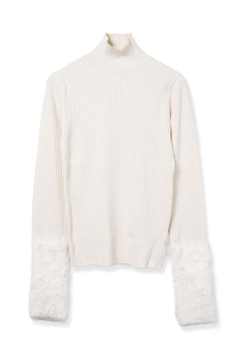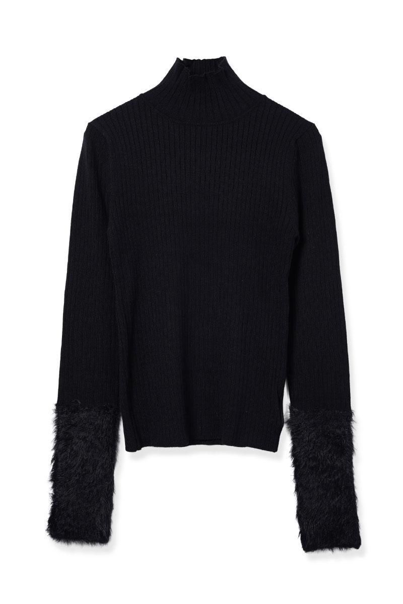 すっきりとしたリブニットの袖口にシャギーニットがあしらわれたシンプル可愛いハイネックニット。