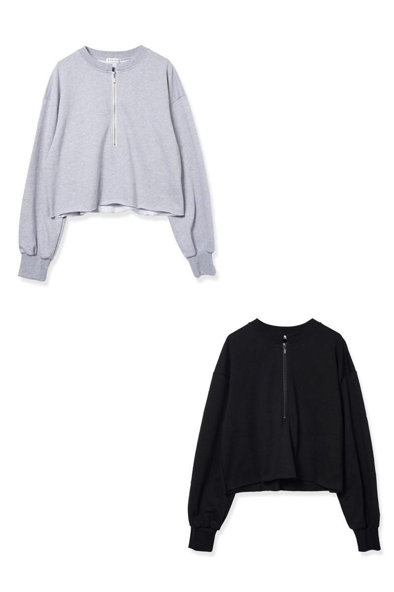 ハーフジップデザインがアクセントになったスウェットプルオーバー。