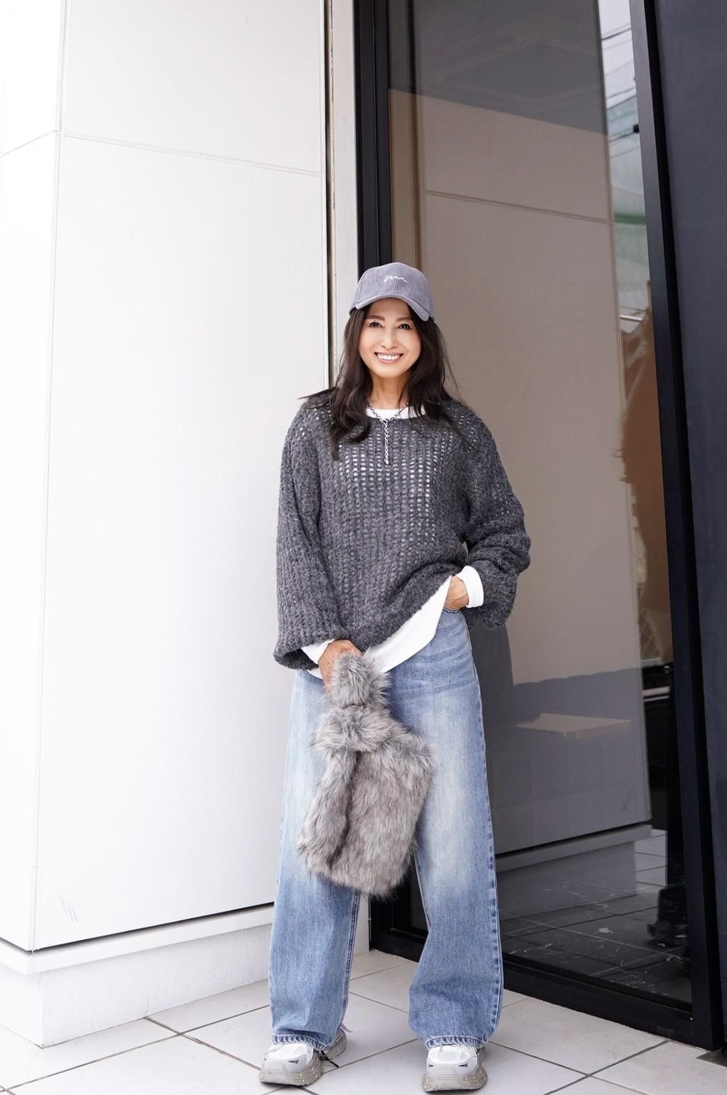 ローゲージニットはお手持ちのカットソーと組み合わせたりキャミソールの上からレイヤードしても相性が良い着丈とサイズ感になっています。