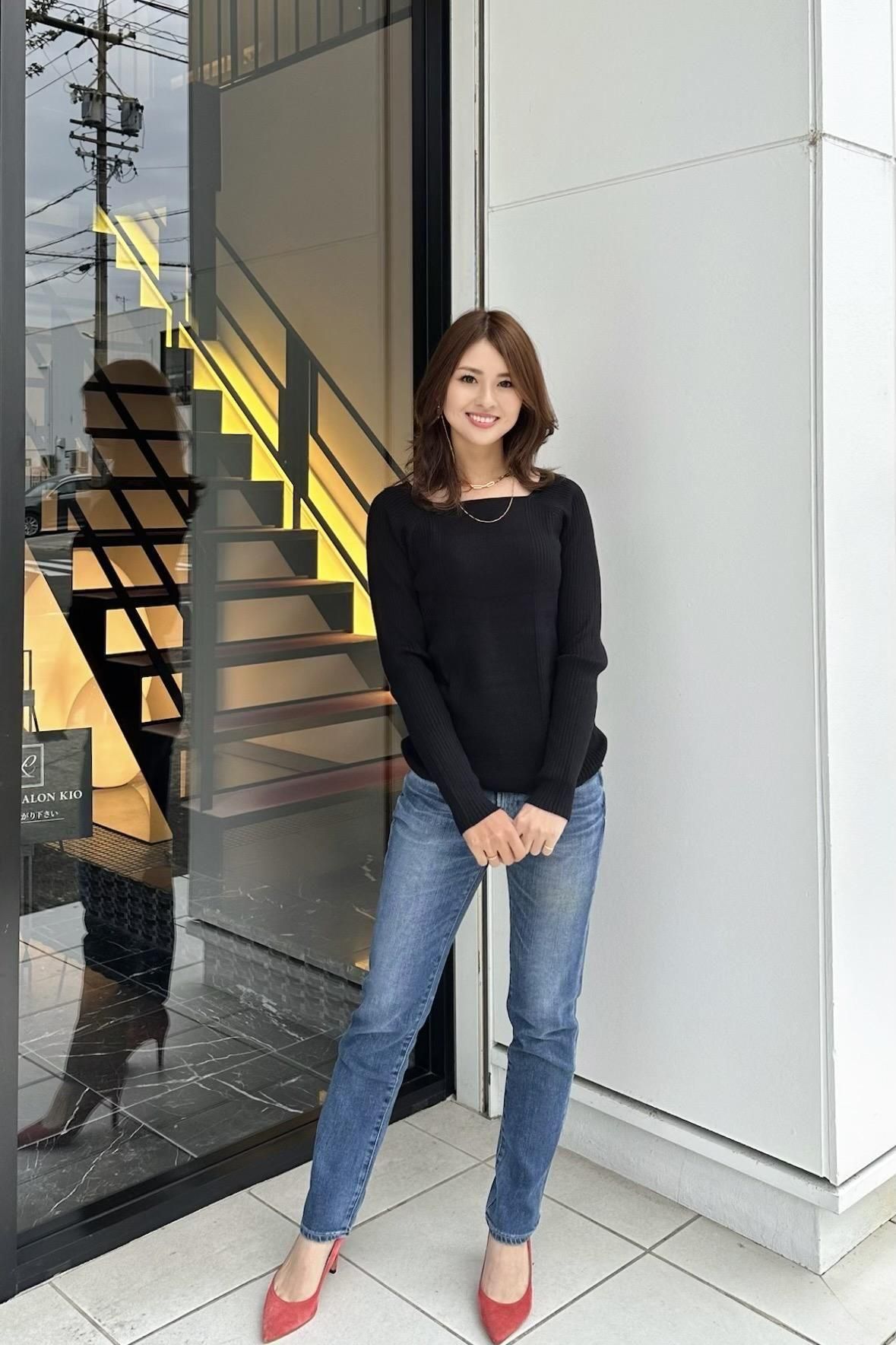 スッキリシルエットのニットトップスとして、オールインワンやワンピースのインナーとしても活躍する、一枚あると便利なニットです。