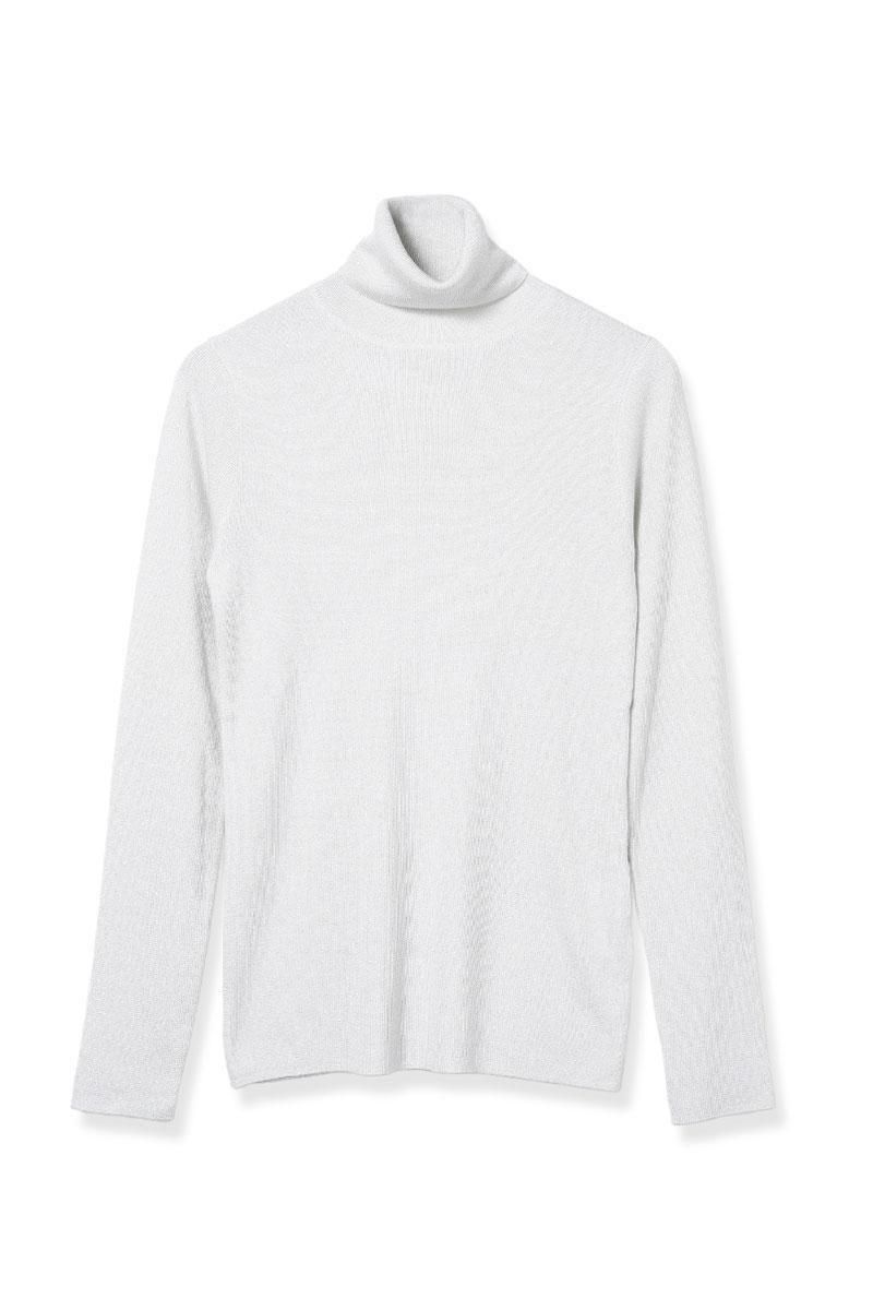 上品なラメがあしらわれたハイネックニット。