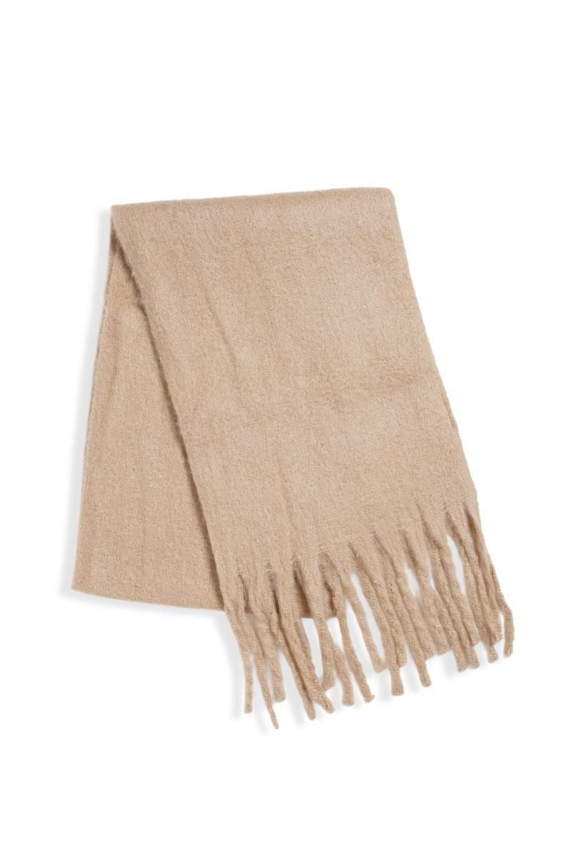 ふんわりとした風合いが心地よい、モヘアライクのフリンジストール。