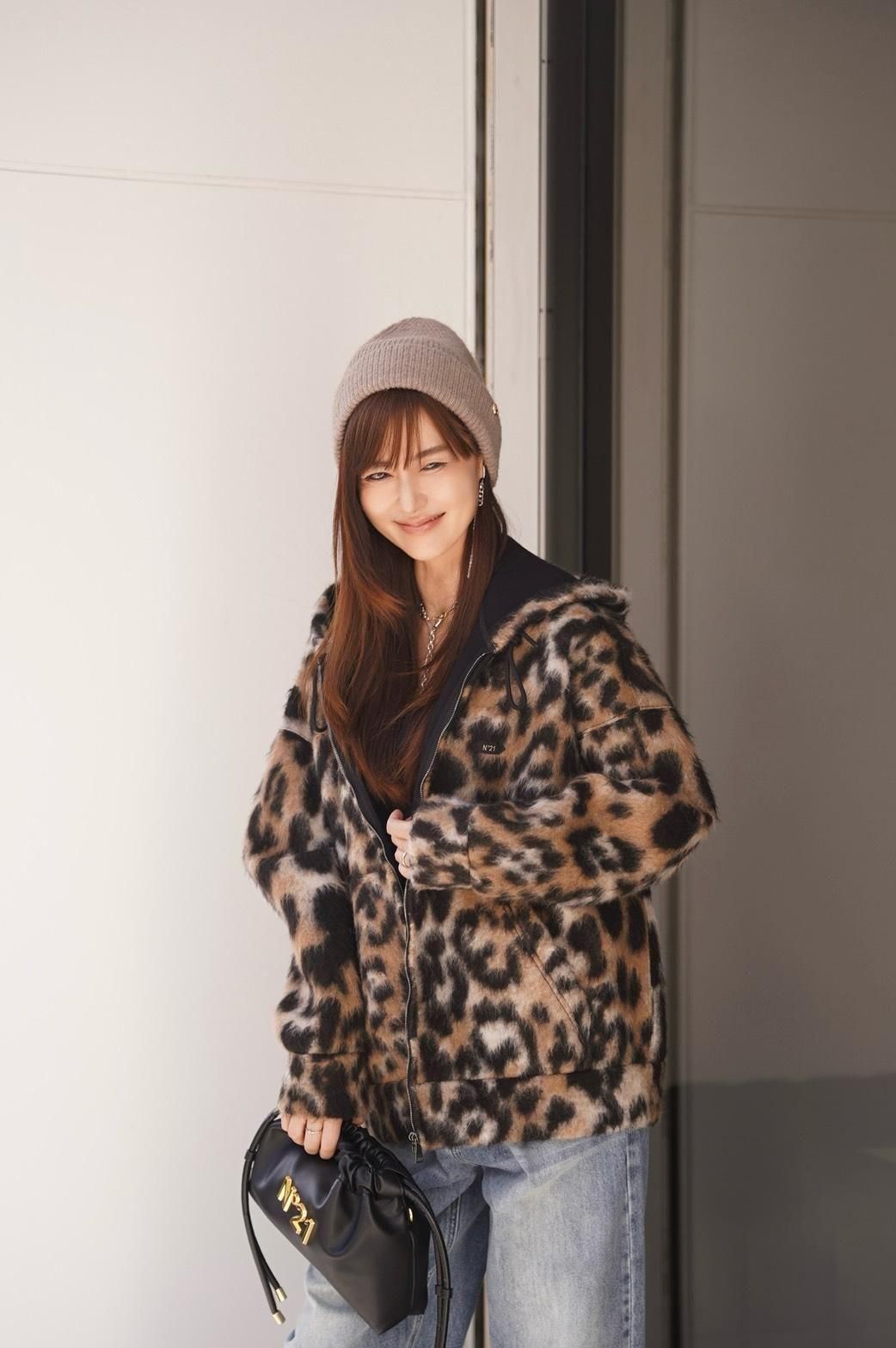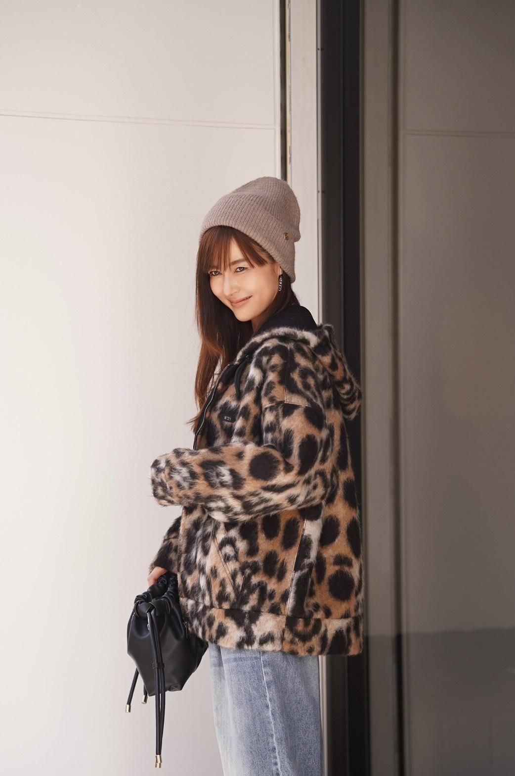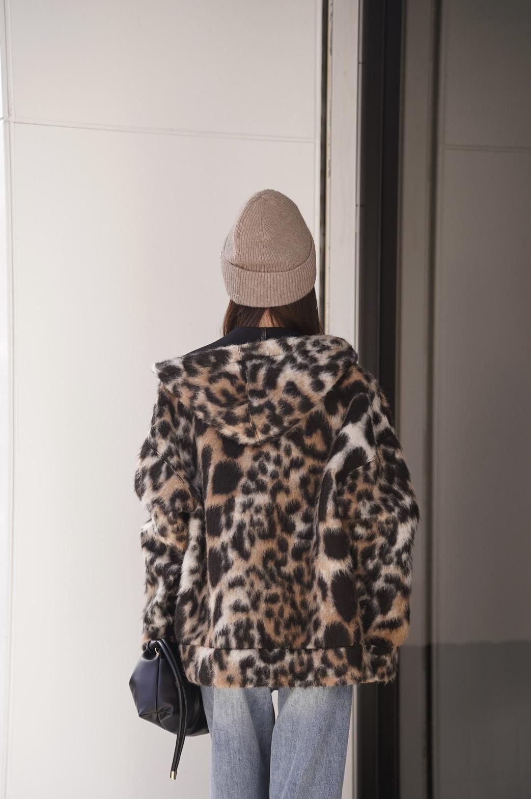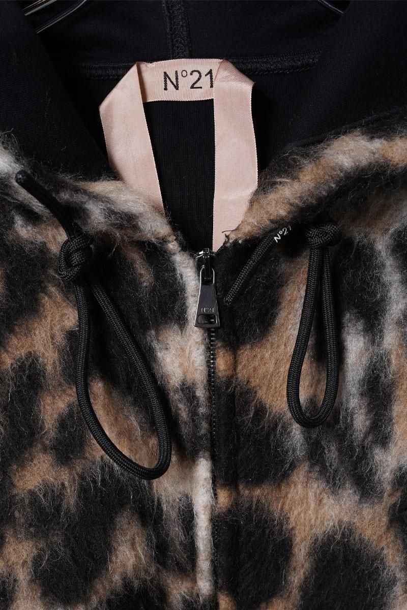 N°21らしい遊び心と上品さが溶け込んだ、レオパード柄のファーフーディ。